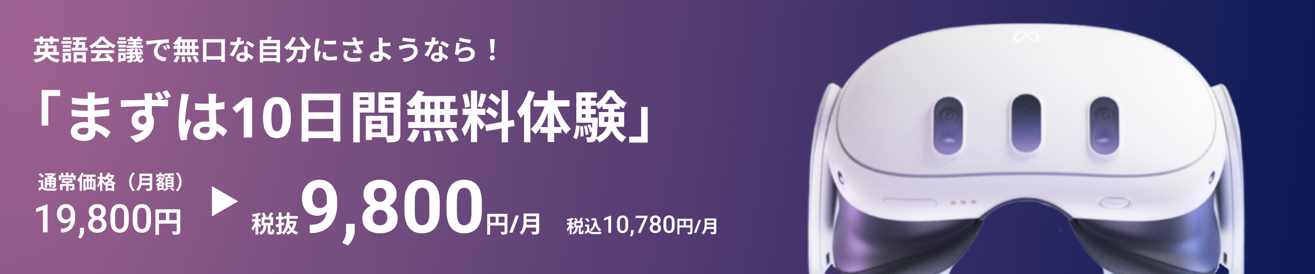 VRをかけると、まるでその場に本当にいるかのような臨場感を感じながら、英会話講師に余計な気遣いをする必要なく、自分のペースで没入して練習できるため、アウトプット量が確保でき、スピーキング力の向上も早くて効率的です。